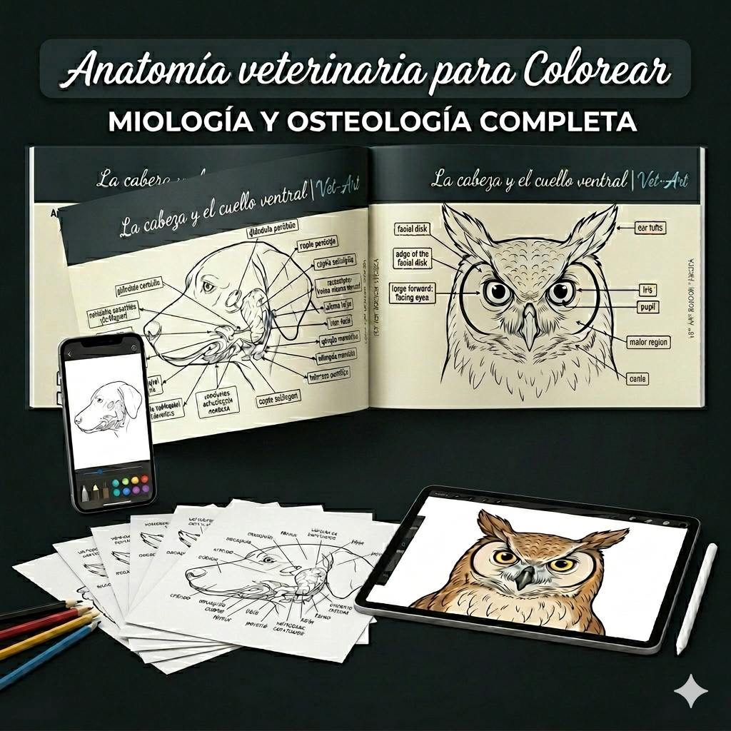 Vet-Art es un material exclusivo que te guía paso a paso para transformar tu aprendizaje de anatomía, utilizando técnicas de neuro-asociación visual, estructuras de alta retención y explicaciones claras, diseñadas para ayudarte a construir una base técnica sólida y dominar tus exámenes y la práctica clínica como nunca antes."